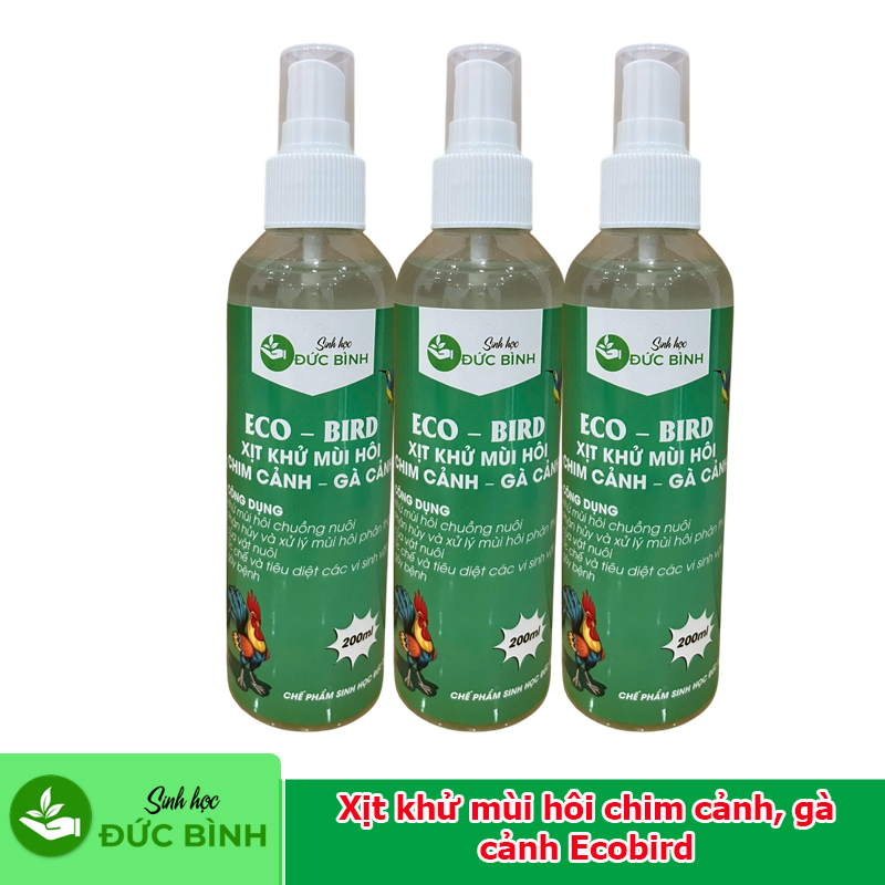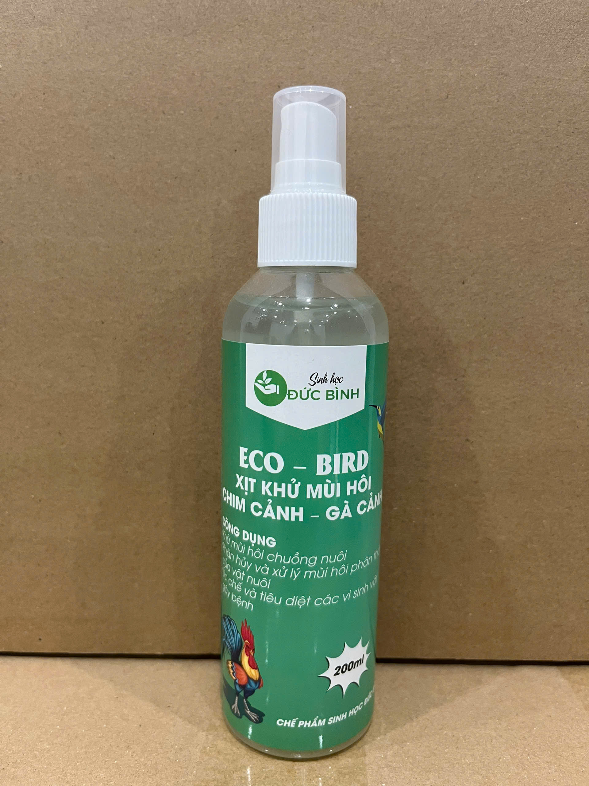 Ecobird là chế phẩm vi sinh dạng xịt dùng để khử mùi hôi chuồng chim cảnh, gà cảnh. Sản phẩm chứa nhiều vi sinh vật hữu hiệu giúp phân giải phân thải, ức chế và tiêu diệt vi sinh vật gây bệnh, từ đó làm sạch môi trường và phòng bệnh cho vật nuôi.